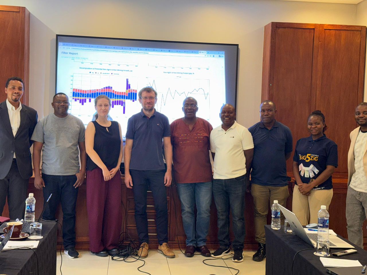During the workshop, the team focused on expanding the model’s granularity to better reflect the specific features of the Zimbabwean economy, supporting more detailed and policy-relevant analysis. The discussions also emphasized the continued development and practical use of the framework in the monetary policy process.